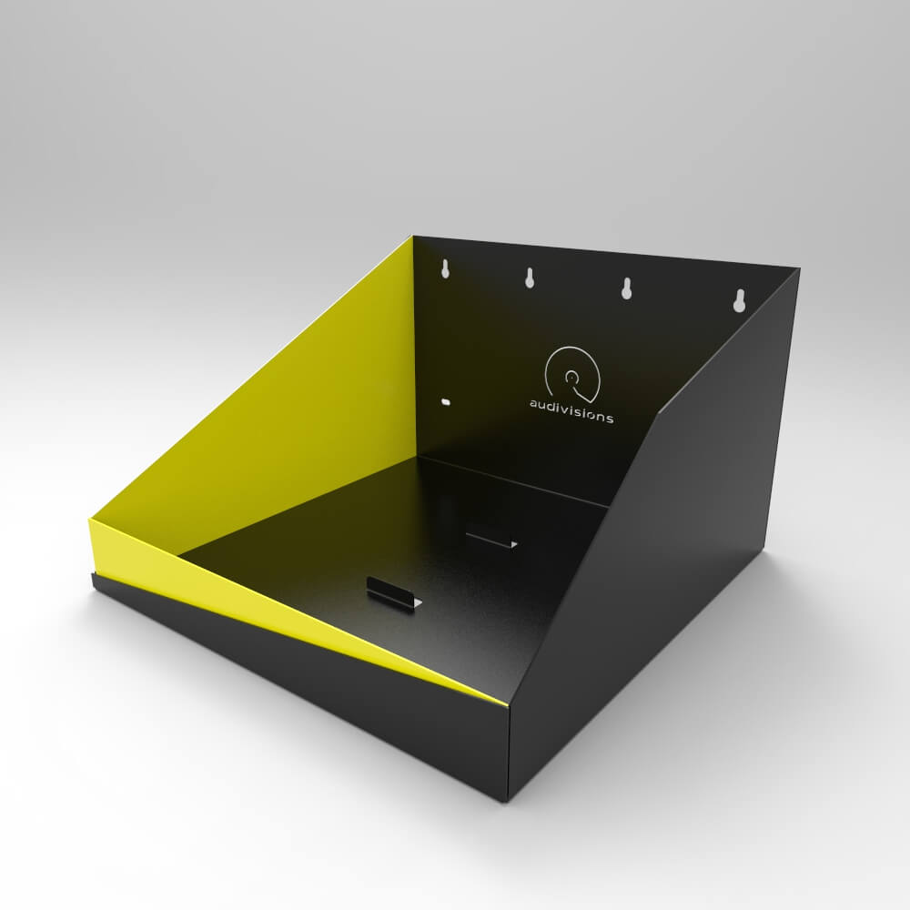 The different wall mounted holder types provide storage options for up to 1-90 records, with different aesthetic outlook. Thanks to the diverse design of the products the edges and the cover of the albums become visible, creating a special atmosphere in the room.